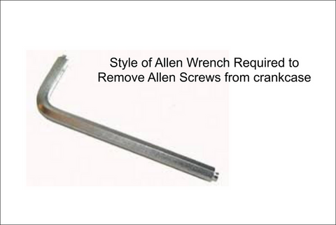 With the studs removed, use a hammer and sharply wrap each of the allen head retaining screws. This will help shock them loose from the Blue Loctite used to help retain them. Before attempting to remove the allen screws it is suggested that you use a propane torch or B tank to heat the crankcase, in the area of the threads holding the bolts.
